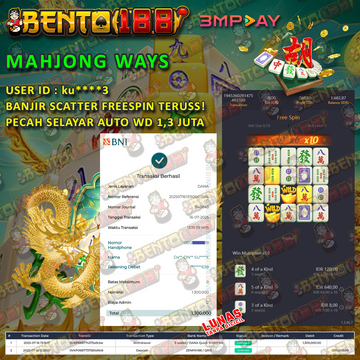 AKUN BARU BENTO188 PAGI-PAGI SUDAH MELEDAK JACKPOT DI MAHJONG WAYS 2 WD 3,1 JUTA