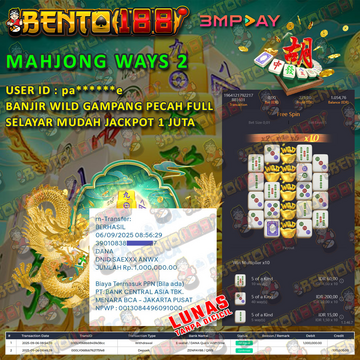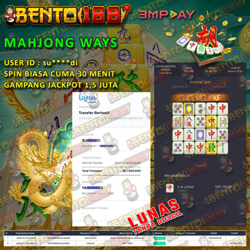 Mahjong Ways 2 tanpa pakai pola apapun, hanya cukup spin biasa maka saldo gampang naik dan sukses WD 3 jutaan. Situs Bento188 terkenal sebagai situs slot gacor sehingga tanpa pakai pola apapun pun dijamin saldo gampang naik.