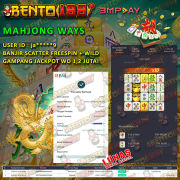 Depo 200 ribu main slot di Mahjong Ways PG Soft di Bento188 belum sampai 30 menit saja sudah meledak jutaan langsung WD 1,8 juta.