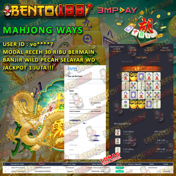 Mahjong Ways Bento188 tanpa pakai pola apapun, hanya spin biasa tetap gampang dapat JACKPOT dan sukses WD 1,5 juta. Situs Bento188 terkenal sebagai situs slot gacor sehingga tanpa pakai pola apapun dijamin gampang JACKPOT.
