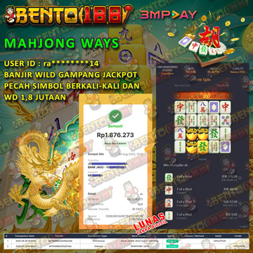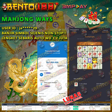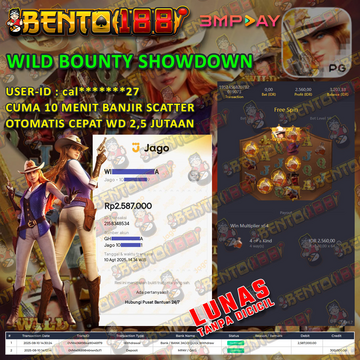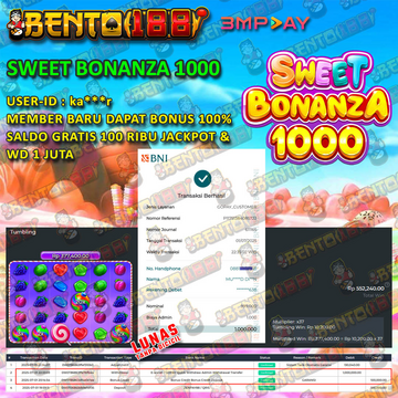 MEMBER BARU BENTO188 DEPO PERTAMA 53 RIBU CUMA 15 MENIT TURUN X1000 JACKPOT 2,3 JUTAAN