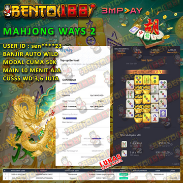 Bento188 situs slot gacor gampang menang dan mudah turun JACKPOT. Setiap menit selalu ada pemain yang mendapat JACKPOT di segala permainan yang ada di situs slot gacor Bento188. Cari uang tambahan sebesar jutaan di Bento188 sungguh mudah cuma 1X spin langsung WD hampir 3 juta.