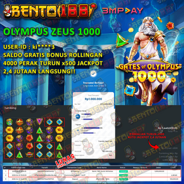 Member baru tanpa pakai pola apapun langsung meledak JACKPOT dan WD 1,4 juta. Disini pemain bisa merasakan sensasi winrate kemenangan tertinggi 97,39% sehingga setiap menit pasti turun JACKPOT di semua permainan slot online yang ada di dalam situs gacor Bento188.