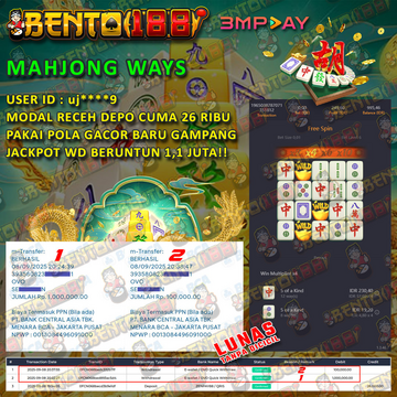 BENTO188 BANJIR JACKPOT TIAP MENIT KARENA GAMPANG FREESPIN & PERKALIAN BESAR WD 1 JUTA