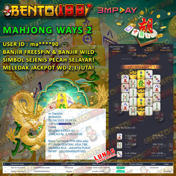 Hanya di Bento188 member setiap hari bermain pasti setiap hari dapat WD JACKPOT, Depo-WD non-stop tanpa henti dijamin CUAN dan ANTI RUNGKAD. Depo semakin besar maka peluang WD JACKPOT semakin di depan mata.