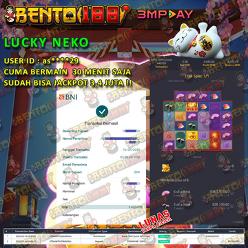 Bento188 situs slot gacor gampang menang dan mudah turun JACKPOT. Setiap menit selalu ada pemain yang mendapat JACKPOT di segala permainan yang ada di situs slot gacor Bento188. Cari uang tambahan sebesar jutaan di Bento188 sungguh mudah cuma 1X spin langsung JACKPOT 1,4 jutaan.