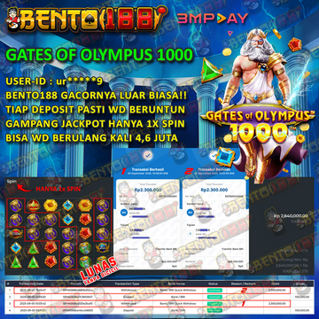 Pemain judi slot online yang bermain di situs slot gacor Bento188 dijamin gampang jadi jutawan hanya dalam sekejap. Bermain slot online cuma 30 menit sudah BANJIR FREESPIN dan gampang JACKPOT WD 1 jutaan di Bento188.