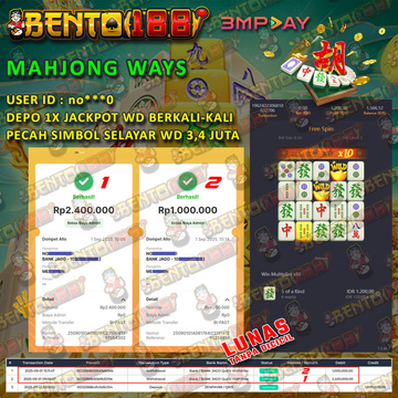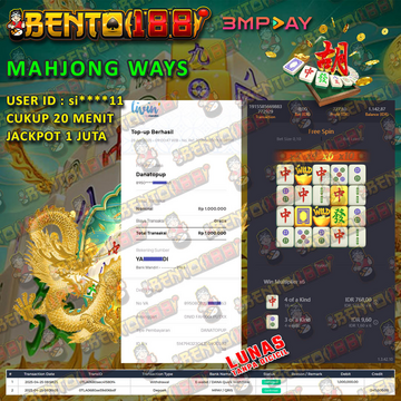 Motto Bento188 adalah memberikan sensasi kemenangan JACKPOT yang tidak bisa di dapatkan di situs lain. Pakai pola gacor terbukti memberikan winrate kemenangan mencapai 97,39% sehingga hampir setiap menit pasti turun JACKPOT di Bento188. Depo 1X WD berkali-kali hingga 4 juta.