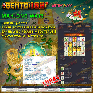 Modal receh 20 ribu bermain di Mahjong Way PG Soft yang lagi BANJIR SCATTER dan perkalian besar non-stop sangat membantu dan menguntungkan pemain slot online karena setiap simbol gambar sejenis pecah otomatis. Hanya 30 menit saja Auto JACKPOT WD 1 jutaan di Bento188.