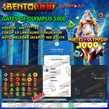 LEDAKAN JACKPOT DI BENTO188 FANTASTIS MODAL RECEH 20 RIBU CUMA 30 MENIT JACKPOT 1 JUTAAN