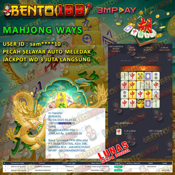 DEPO PERTAMA 300K DI BENTO188 LANGSUNG WD 22 JUTA DI MAHJONG WAYS 1
