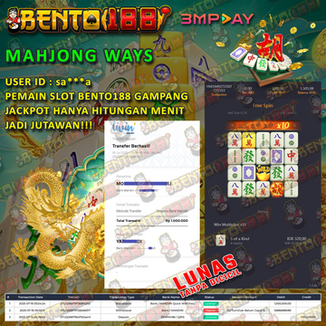 DEPO PERTAMA 300K DI BENTO188 LANGSUNG WD 22 JUTA DI MAHJONG WAYS 1