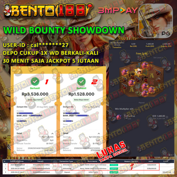 HANYA 20 MENIT MAIN GAME SLOT DI SITUS GACOR BENTO188 OTOMATIS WD 1,6 JUTAAN