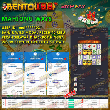 ID di Bento188 semuanya gacor, baru-beberapa hari sebelumnya sukses WD 3 juta dan 11,8 juta, ajukan klaim promo Pinjaman Saldo dapat saldo gratis cuma 21 ribu dimainkan meledak lagi jadi 23 jutaan. Sudah tidak zaman perkalian X1000 apalagi yang cuma X500 minggir dulu, main di Bento188 khusus yang cari perkalian X2000.